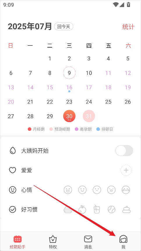 1、启动西柚大姨妈App,点击界面右下角的【我的】选项,进入个人中心页面;