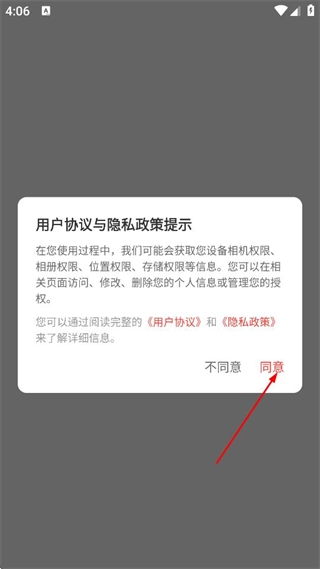 1、在用户协议弹窗中,点击同意,进入登录页面。