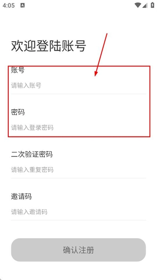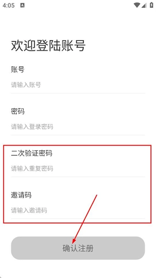 4、输入二次验证密码与邀请码后,点击确认注册按钮,即可完成账号注册流程。