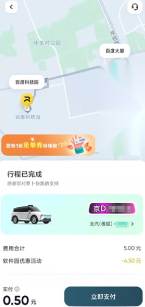 即便不直接使用「萝卜快跑」应用,通过百度地图或百度App的打车功能,同样可以呼叫到萝卜快跑的车辆。