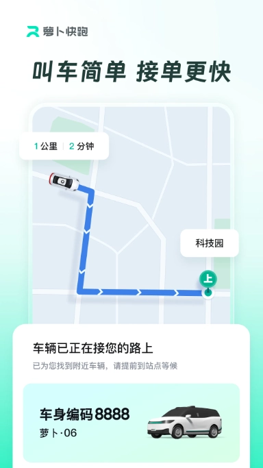 【未来科技出行新体验】萝卜快跑为您提供一键预约乘车、目的地定位搜索、步行方向指引等全场景自动驾驶出行服务,界面设计简洁直观,操作轻松流畅,带您领略最尖端的自动驾驶科技魅力,畅享高品质的出行体验。