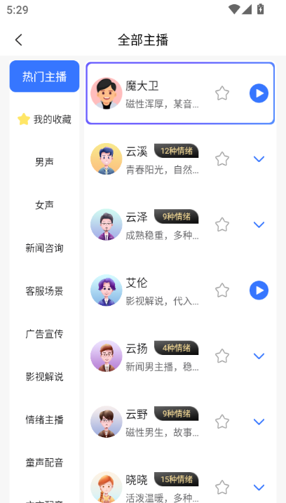 全能配音王是一款功能十分强大的手机配音应用,它支持免费制作配音,了丰富的主播配音和背景音乐资源。用户只需输入文字,再挑选合适的语速与音乐,就能快速生成配音,整个操作既简单又实用。此外,这款软件无需登录就能直接使用,在同类配音工具中优势明显。