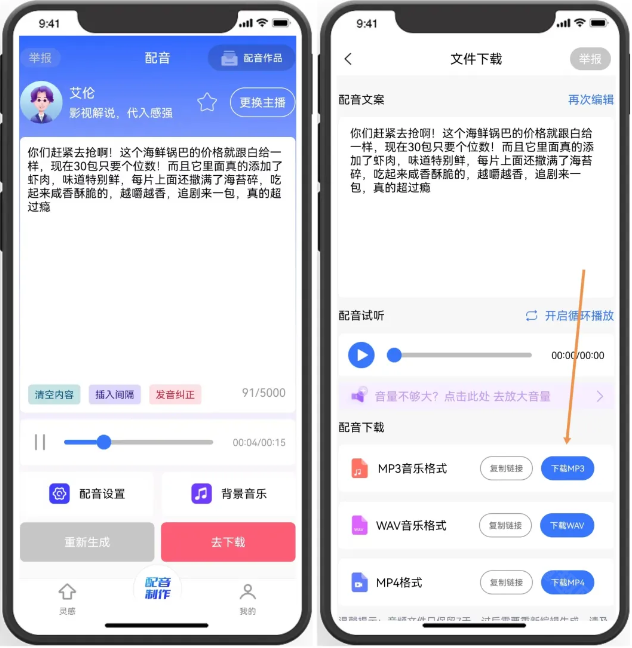 3.点击生成配音,觉得效果满意就可以保存作品啦。