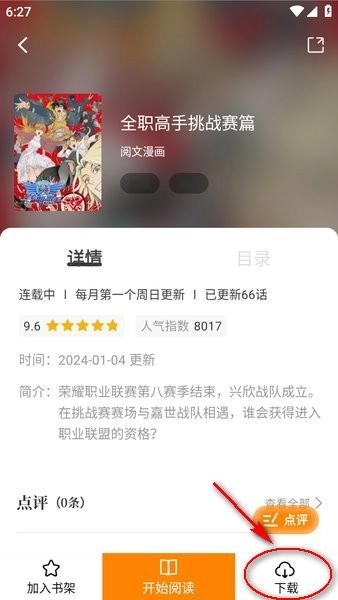 如果打算出门,不妨把漫画缓存好,在“详情”页面点击右下角的“”按钮就可以了。