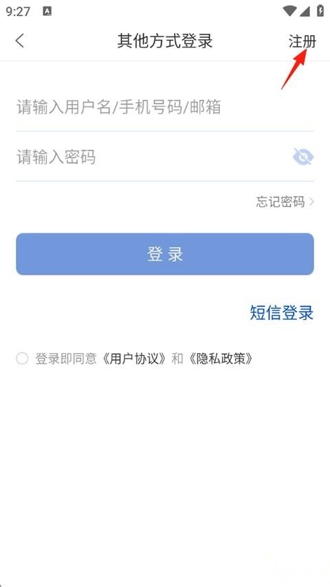 3、要是您还没有账号,先点击右上角的注册按钮,完成注册后再登录。