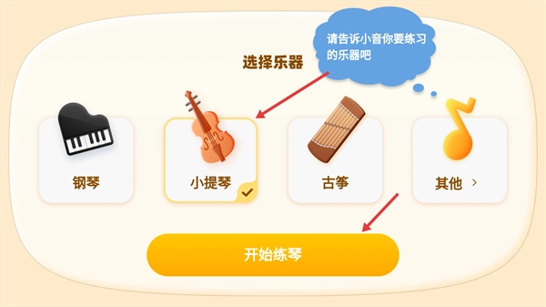 1、先选定想要练习的目标乐器,确认好选择后,点击界面上的【开始练琴】按钮,就能进入到练琴的主界面了。