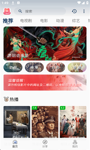 小熊影视FAN最新版是专为热爱追剧的朋友打造的视频播放工具,核心功能聚焦极速缓冲与一键播放,无论是热门剧集《狂飙》的最新更新,还是经典影片《肖申克的救赎》,只需轻点即可瞬间加载高清画面,彻底摆脱卡顿与冗长的等待。它兼容多种视频格式,可自动匹配最优播放源,还能依据网络情况智能调节清晰度;睡前追剧时,贴心的蓝光过滤模式会自动开启,有效减轻对眼睛的刺激。更令人惊喜的是,它还配备了弹幕功能,让你在沉浸剧情的同时,也能感受到来自网友的热闹互动氛围。