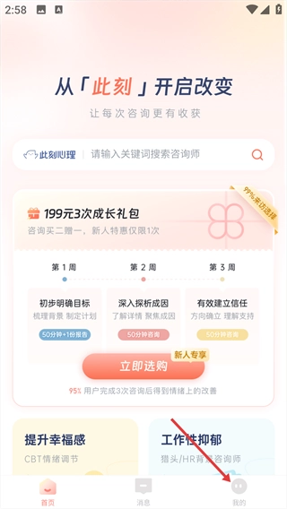 3、专业咨询服务:支持在线一键预约权威专家,无论是恋爱婚姻、情绪压力、亲子教育、职业发展等生活议题,还是焦虑、抑郁、强迫症等心理困扰,都能通过线上或线下等多种服务形式,为你排忧解难,助力解决各类生活烦恼。