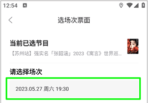 4. 在选场次票面界面,我们需要点击想要转票的场次来完成需求选择。