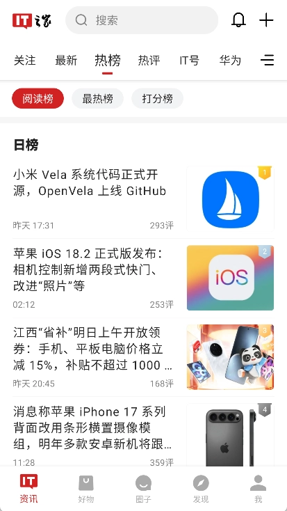 IT之家是科技爱好者必备的新闻资讯软件,能为我们提供当下最新、最全面的IT新闻与数码资讯,让我们第一时间掌握行业动态。同时,它还会对国内外的硬件数码产品展开深度测评,帮助我们获取全面且专业的技术指导与产品评价。要是我们对某款数码产品有独特见解,还能在IT圈板块发表自己的看法,或是和其他科技爱好者交流观点!