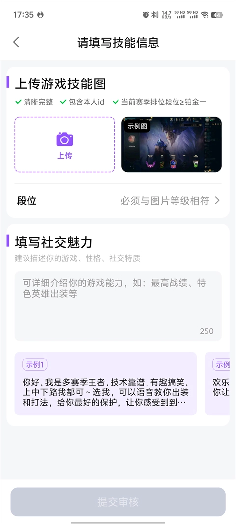 5、最后,每个技能都需要提交资质图和语音,点击提交按钮,若申请成功即可开始接单。