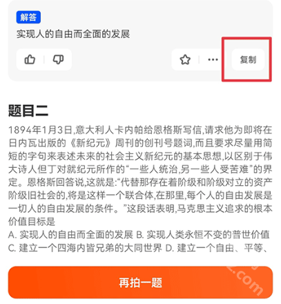 4. 等搜索结果显示出来后,点击“复制”按钮就能把答案复制下来了。