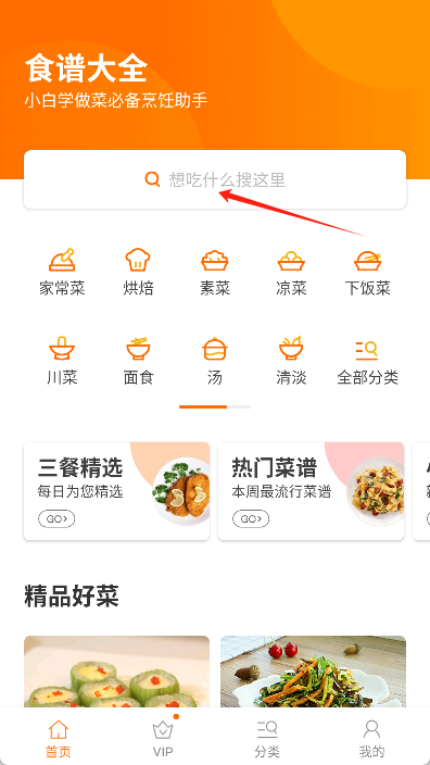 可以直接搜索并挑选自己喜欢的菜谱,这里我们拿“家常菜”来举例。