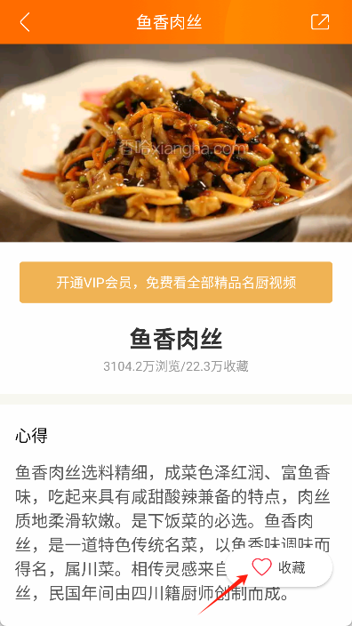 5、要是碰到心仪的菜谱,直接点击“收藏”就行,这样日后随时都能查看。