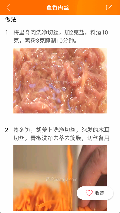 进入家常菜分类后,挑选一道经典的“鱼香肉丝”食谱。