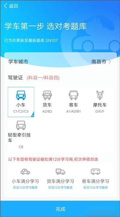 1、启动软件后,依据自身的实际需求挑选想要报考的驾驶证类型;