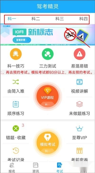 软件内设有科目一至科目四的学习与模拟考试功能,可供我们使用。