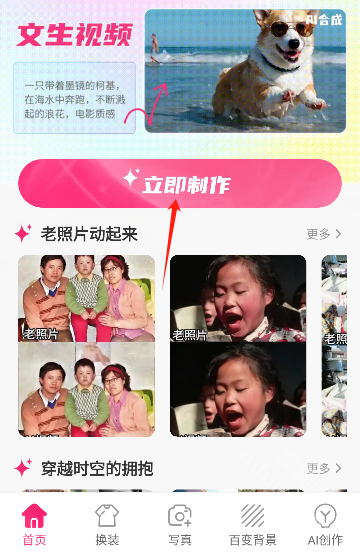 2.在甜鸭相机首页点击立即制作