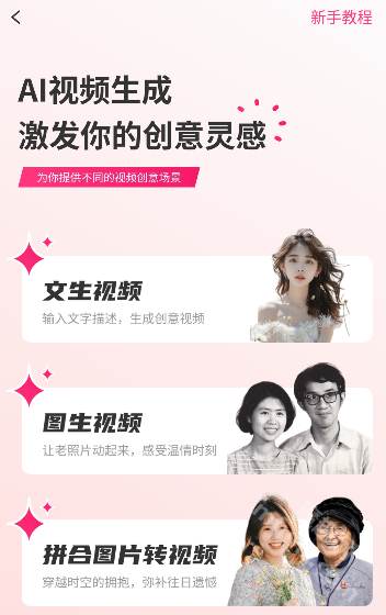 3.接着依据个人需求挑选文生视频、图生视频或者拼合图片转视频的方式。
