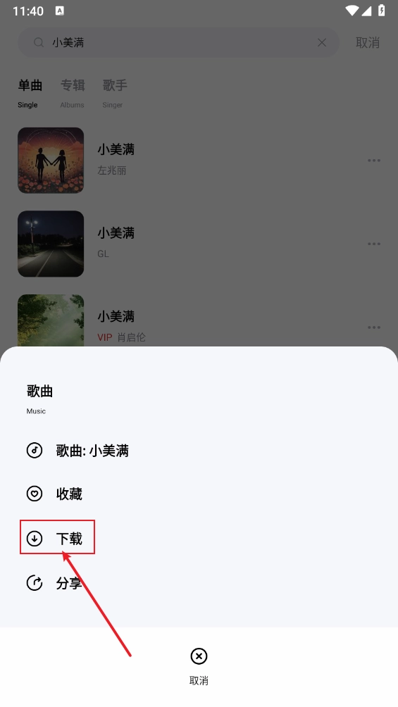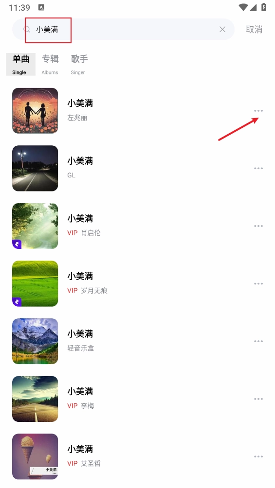 2、如图,点击需要歌曲的右边三个点。
