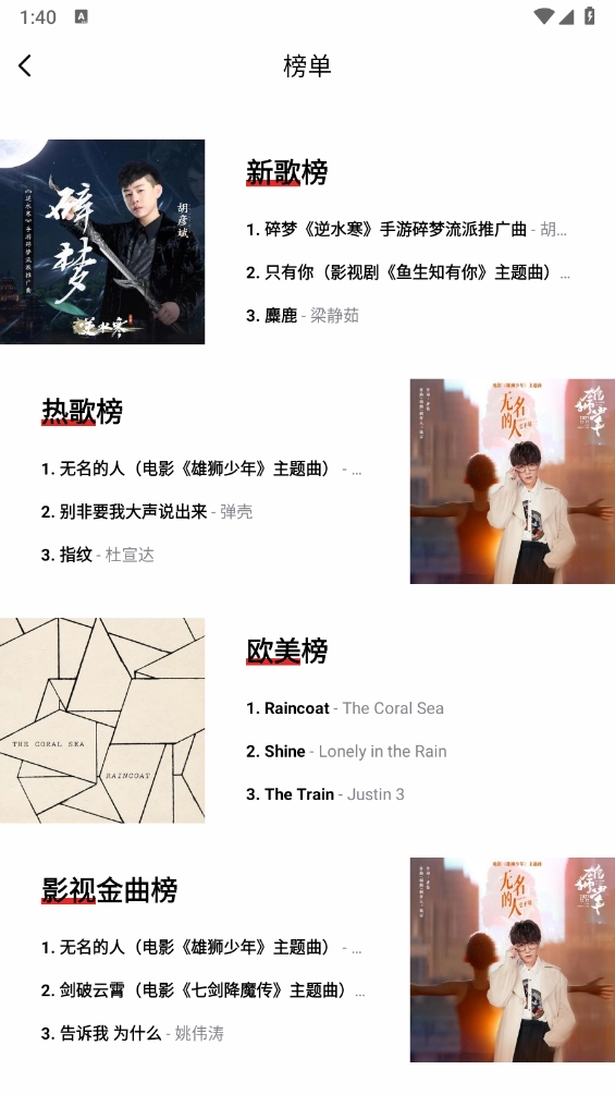 2、整合全球范围内的各类音乐榜单,涵盖最新发行的歌曲、当下热门的曲目,以及Hito、Billboard等知名榜单,以此精准把握全球音乐的流行趋势。