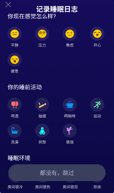 3、接着点击底部的睡眠图标,记录个人的睡眠日志,该软件就会开始监测用户的睡眠过程。