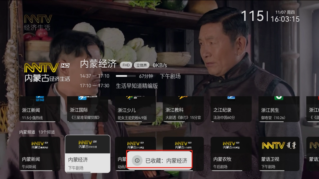 2、长按想要收藏的频道,显示“已经收藏”。