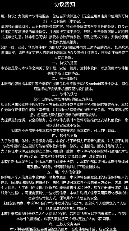 1、安装无空手表应用商店,同意相关政策与协议后打开该应用商店。