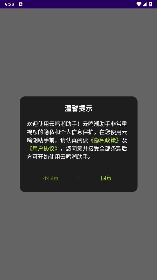 1、安装云鸣潮助手,在同意相关政策与协议后将其打开。