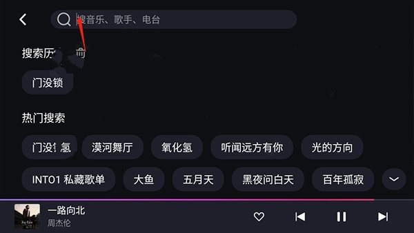 2、随后会跳转至搜索界面,在输入框内输入想要搜索的歌曲。