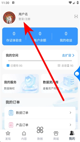 2、在我的页面,点击登录注册,进入登录界面。