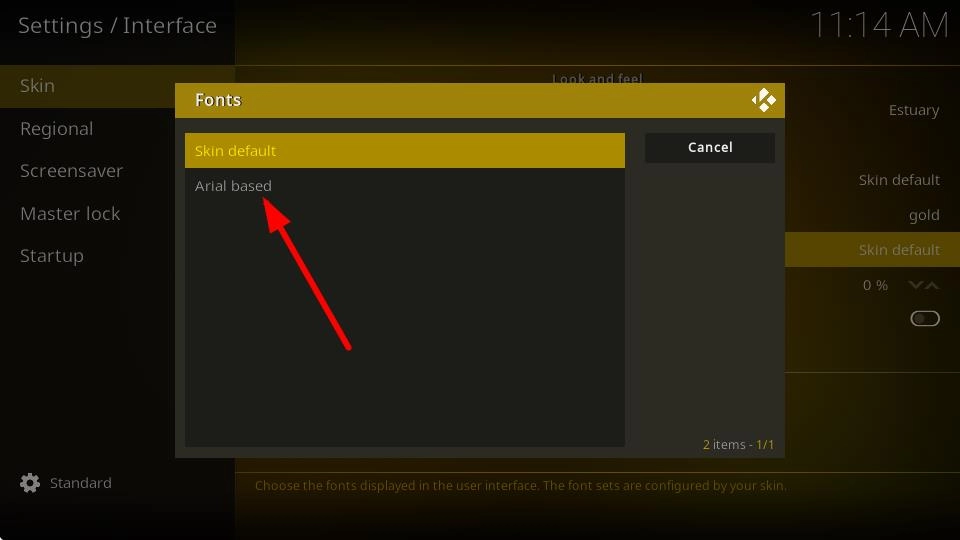 4、在【Settings/Interface】的【Fonts】选项中,你可以选择【Skindefault】或者【Arialbased】字体,以此来对用户界面显示的字体进行设置。