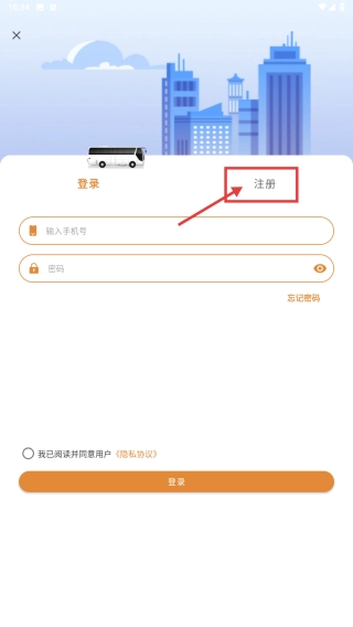3、在登录与注册的选择界面,点击注册选项,即可进入注册页面。