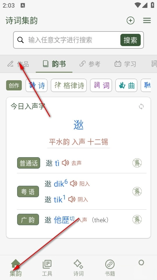 诗词集韵作为一款专注于古诗词查阅与学习的应用平台,具备全面的古诗词检索功能,用户可随时通过诗词内容或作者姓名进行精准搜索,快速定位所需查阅的古诗词;平台还会持续推荐优质的古诗词鉴赏篇目,方便用户随时品读经典。此外,平台设有丰富的古诗词栏目,除了作品检索外,用户还能按作者维度浏览其创作的诗词,发掘更多值得学习的内容。针对诗词创作需求,平台提供了多样的辅助工具,支持韵书、词谱及汉字等内容的查询,助力用户全面获取创作所需的词谱信息。在免费版本中,更配备了多种古诗词检测工具,可对格律诗、古诗、词曲等作品进行合规性检测,帮助用户轻松验证作品是否符合格律规则。