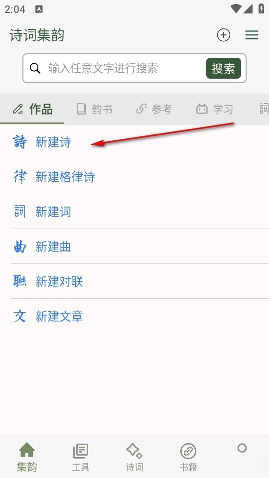 根据自己的需求点击新建诗或曲。