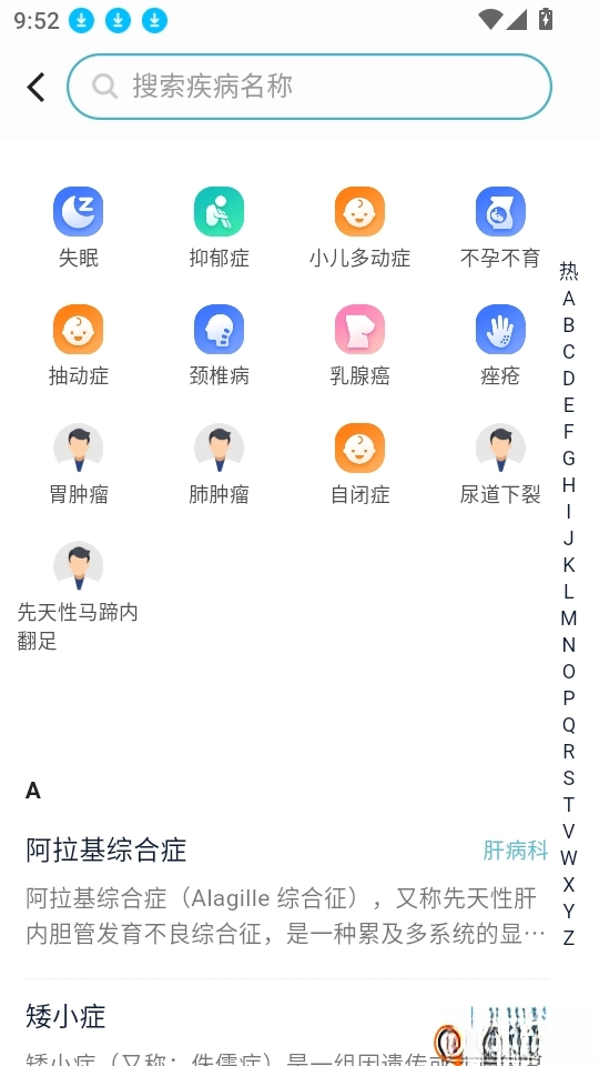 3、之后就可在界面中查看常见的疾病,点击“疾病”按钮来进行下一步。