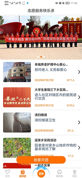3、用户在签到界面中可以签到计时志愿服务