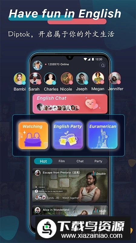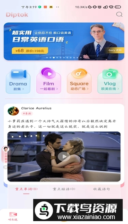 外文在线Diptok作为沉浸式泛娱乐英语练习平台,整合了英语社交、美剧观赏、在线论坛与短视频等多元功能,旨在为中国英语爱好者打造纯粹的英文娱乐社区氛围。