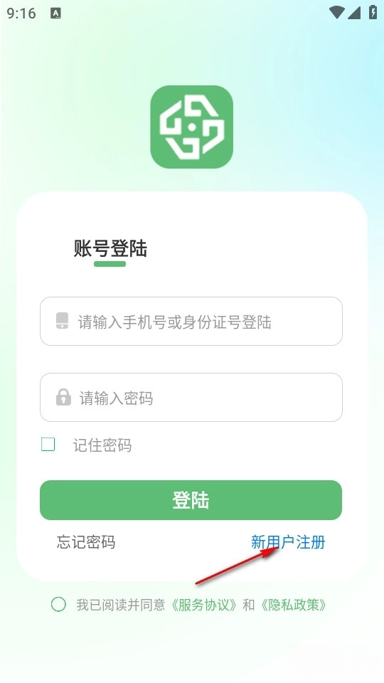 在登录界面登录按钮的下方找到新用户注册开始注册。