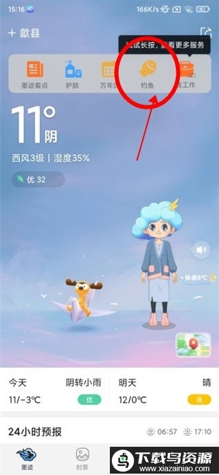 围绕出行、钓鱼、亲子、运势四大场景提供定制化气象服务,让天气信息更贴合具体生活需求。