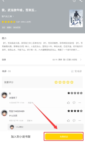 4、在书籍详情页,点击红色箭头指的免费试读。