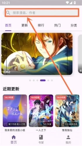 1.启动WLCOMICS漫画软件,接着在顶部的搜索框里直接输入相关内容。