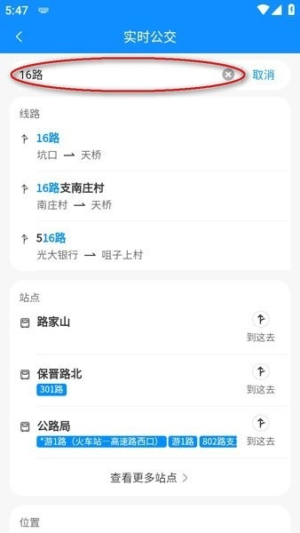 在搜索框中输入线路编号或者站点名称,比如输入“16路”;