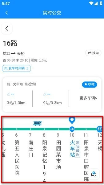 选择具体线路后,就能查看详细的站点信息以及车辆的实时位置了。