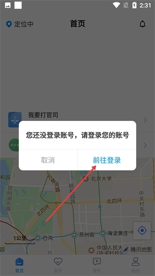2、若处于未登录状态,点击功能选项后会弹出登录提示框,此时选择【前往登录】按钮,即可进入账号登录页面完成验证操作。