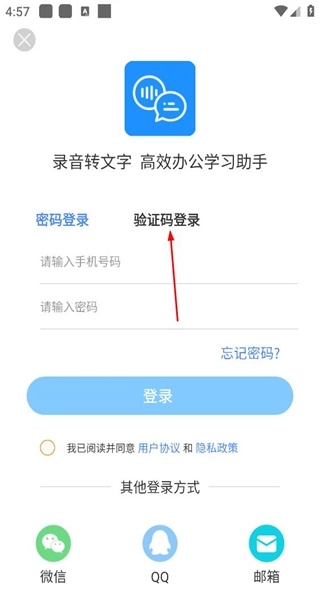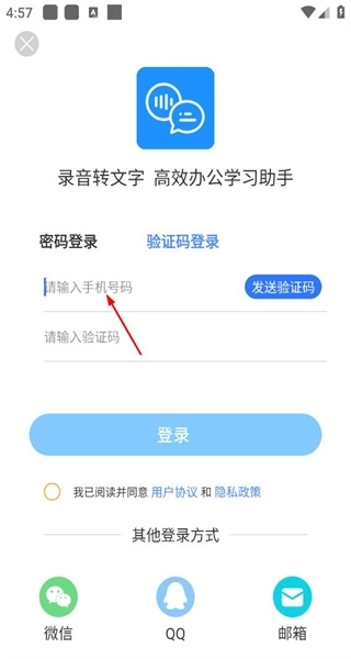 3、进入登录界面后,选择微信登录方式,在准备勾选相关协议后,完成账号登录的操作。
