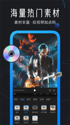 提供视频播放速度调整、反向播放处理、音频轨道插入、动态图形贴纸叠加以及多画面嵌套等实用编辑工具。