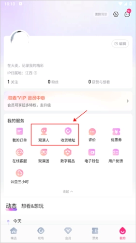 第一步:先在我的界面里把观演人和收货地址的信息填写完整