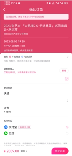 第七步:抢票过程中要持续点击操作,直到进入支付页面才算成功抢到票,之后完成支付就可以了。