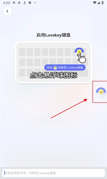 然后点击悬浮球,切换键盘就能够进行使用了